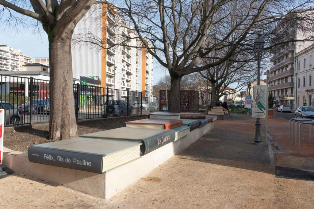 C’est un clin d’œil à la médiathèque Alphonse Daudet entièrement rénovée et agrandie depuis un an : un mobilier urbain monumental a été installé fin décembre 2020 dans la rue Edgar Quinet, à Alès. Dix-sept livres géants et enchevêtrés font désormais office de bancs tout au long de cette rue située entre le Cratère Théâtre et le boulevard Gambetta, et par laquelle le public accède à la médiathèque.